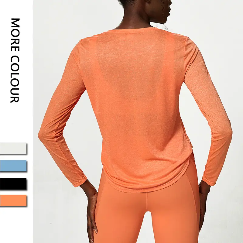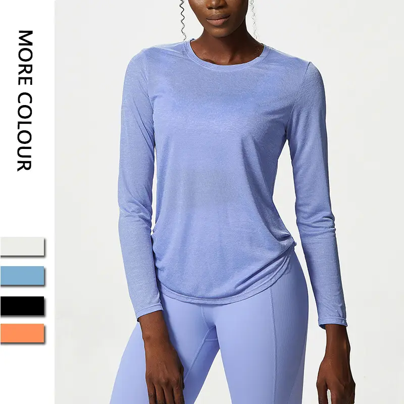 Women’s Yoga Top Shirt Loose Long Sleeve Workout Top Jacquard Quick Dry Fitness Sweat Blouse T-Shirt
